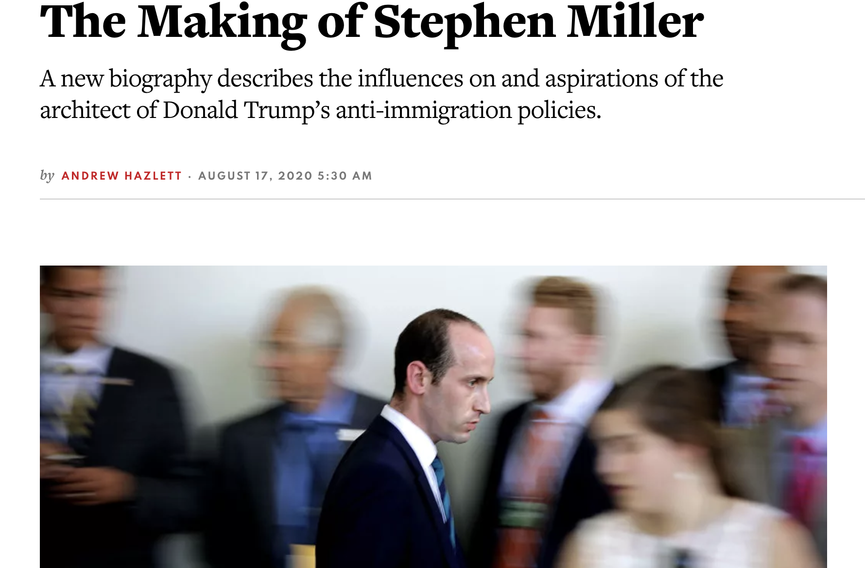 Of course, Stephen Miller is the sort of person who relishes his detractors’ hyperbole. He has been cultivating a cartoon villainy since puberty. [more]